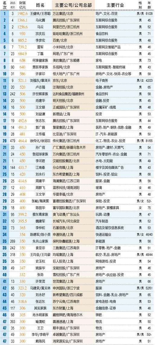 一些早前已上榜的富人,也由于旗下公司2015年上市而身家倍增。