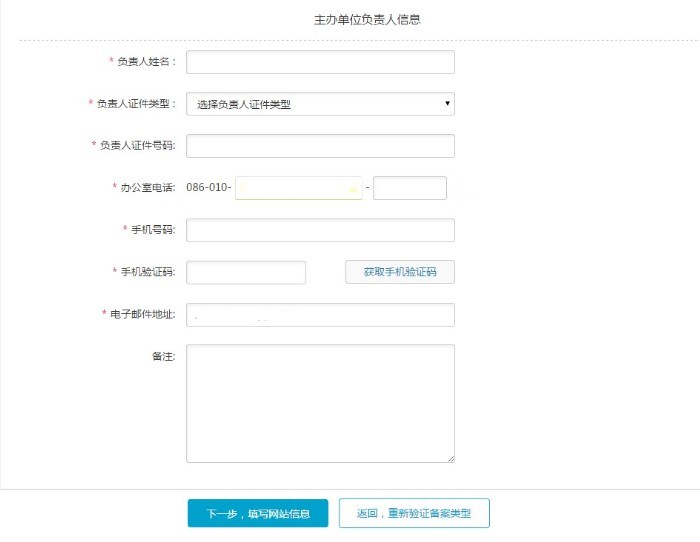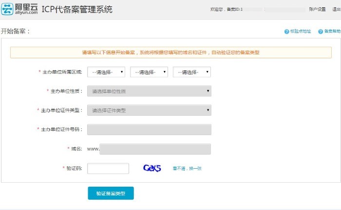 根據您填寫備案域名以及主體信息,進行驗證備案類型