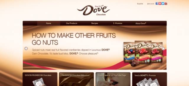 德芙巧克力的網(wǎng)站設(shè)計幾乎整個都是用的棕色,通過不同色度色調(diào)的棕色相互搭配。