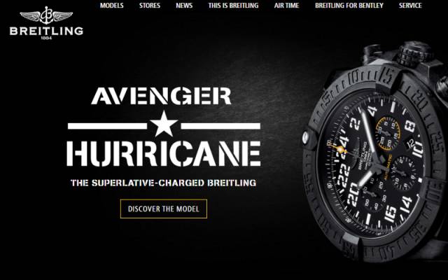 Breitling 使用黃色的CTA按鈕來提醒用戶“發(fā)現(xiàn)”