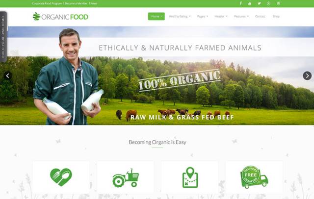 Organic Food 的網(wǎng)站中大量使用了綠色。